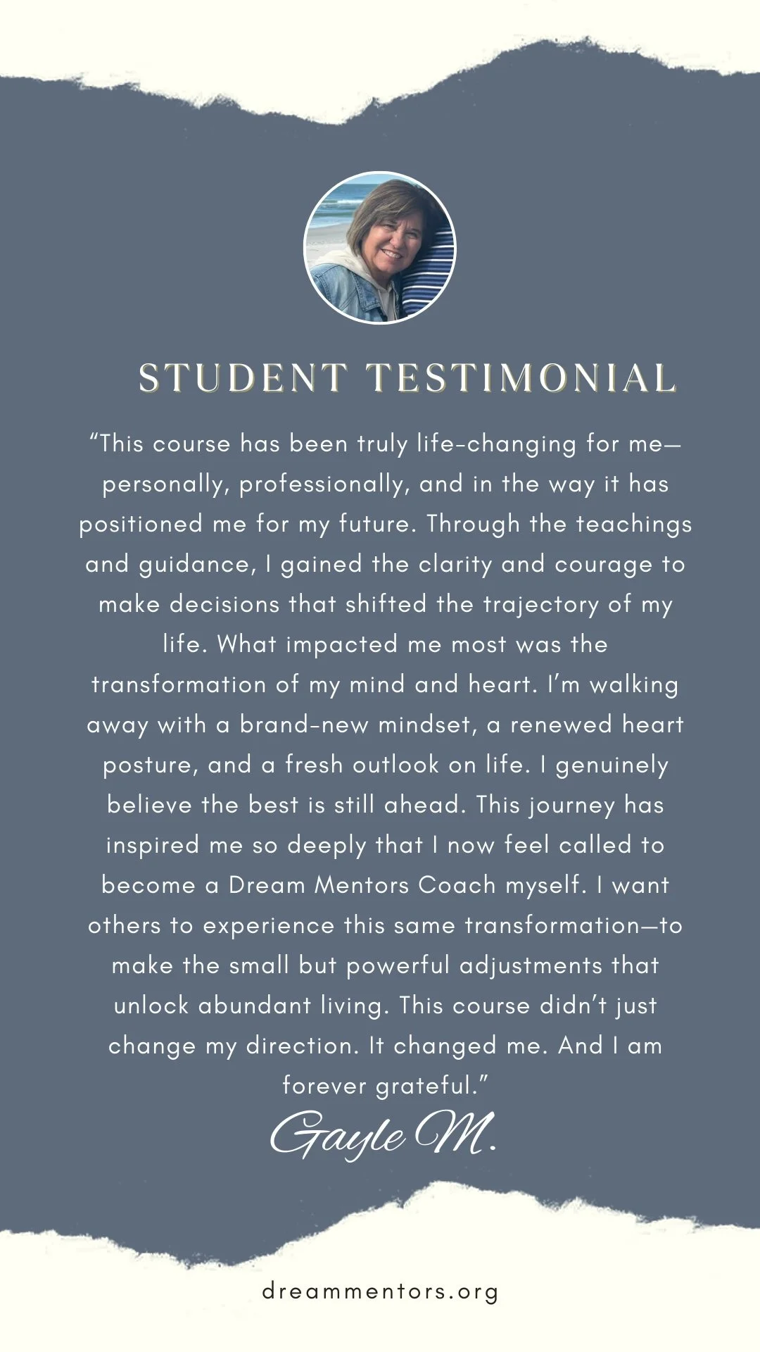 Become a Credentialed Biblical Life Coach upon completion of Dream Mentors 101 and help others